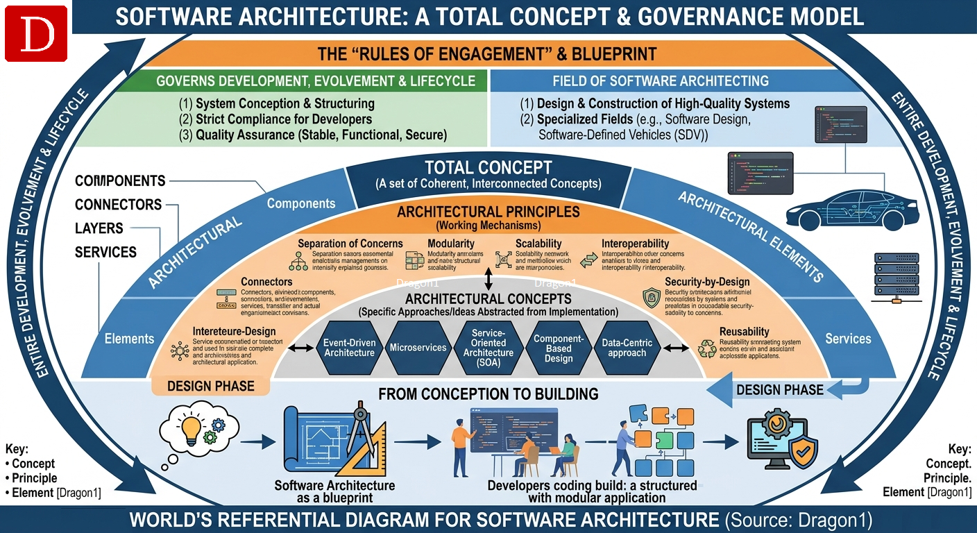 But it is much more. Actually, it should be viewed as a total concept that governs the development, evolution, and lifecycle of the software system or a vehicle. [Dragon1]