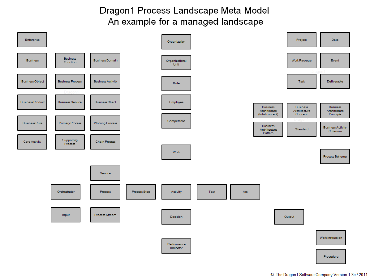 Every process landscape diagram implicitly has a meta-model. That meta-model at least contains the following entity classes: